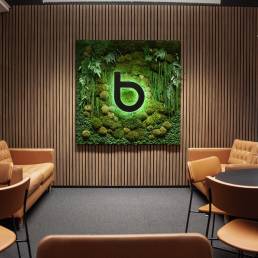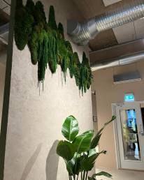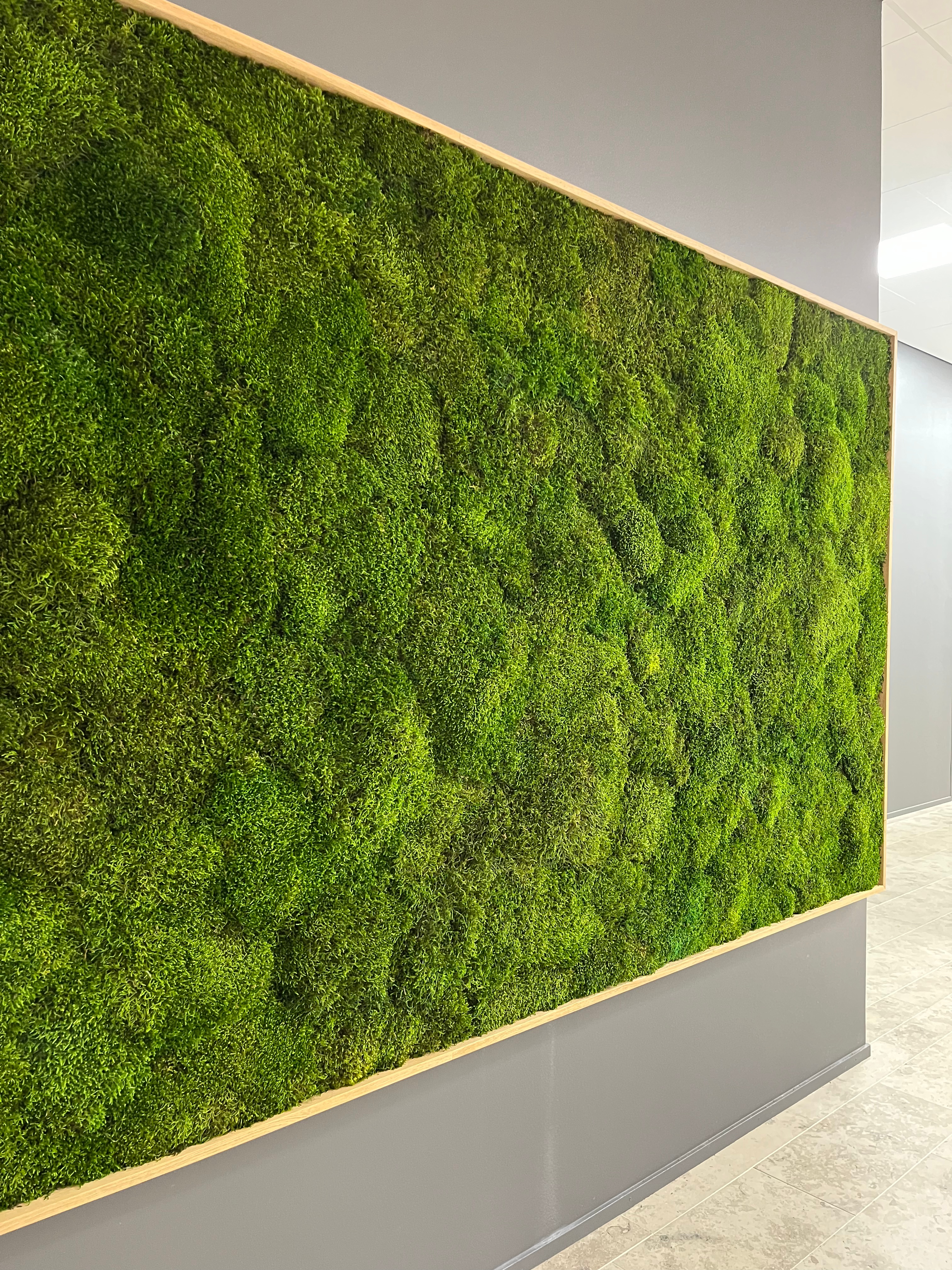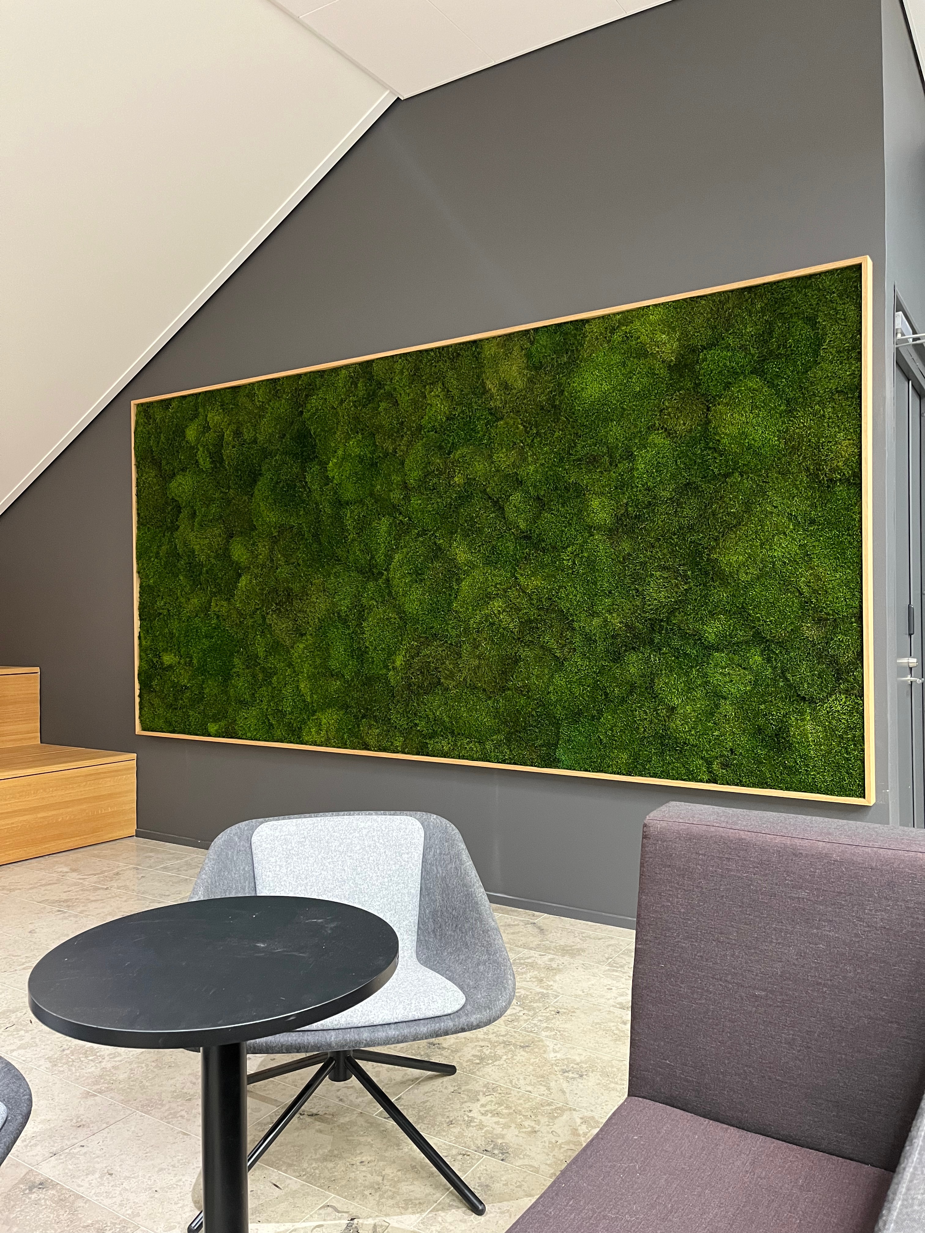 Verdeco Shop valmistaa käsityönä toimisto- ja liiketiloihin yksilöllisiä stabiloituja sammalseiniä, jotka ovat 100% huoltovapaita. Stabiloidut sammalseinät ovat tyylikäs ja ekologinen ratkaisu juuri teidän yrityksellenne, jos haluatte tuoda luonnon elementtejä sisätiloihin ja tehdä asiakkaisiinne lähtemättömän vaikutuksen! Nämä aidosta sammaleesta valmistetut seinät eivät vaadi hoitoa, sillä stabilointi säilyttää niiden raikkaan ulkonäön vuosia ilman kastelua tai valoa. Sammalseinät sopivat monenlaisiin tiloihin, kuten toimistoihin, ravintoloihin tai hotelleihin, ja ne voidaan valmistaa missä tahansa koossa yrityksenne tilojen ja tarpeiden mukaan. Lisäksi sammalseiniin voidaan liittää logo tai muu brändielementti, mikä tekee niistä yksilöllisen sisustuselementin.